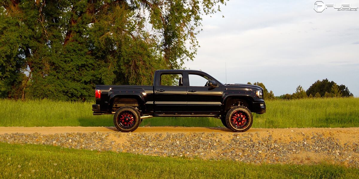 FUEL OFFROAD RAGE (レイジ) D712 グロスブラック/キャンディレッド 22インチアルミホイール ハマーH2 オーバーフェンダーサイズ