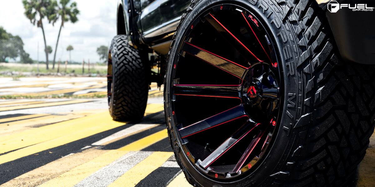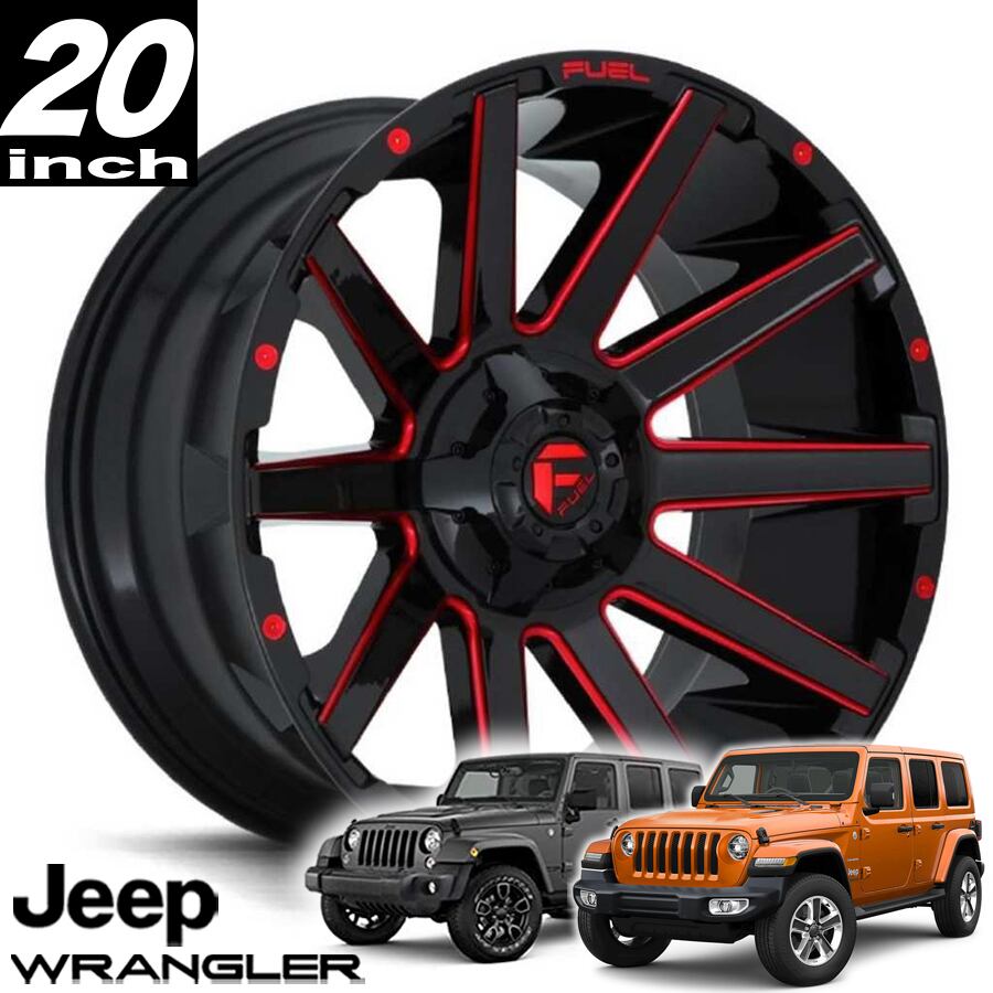 FUEL OFFROAD CONTRA(コントラ)D643 グロスブラックキャンディーレッド 20インチアルミホイール JKラングラー/JLラングラー/JTグラディエーター オーバーフェンダー用